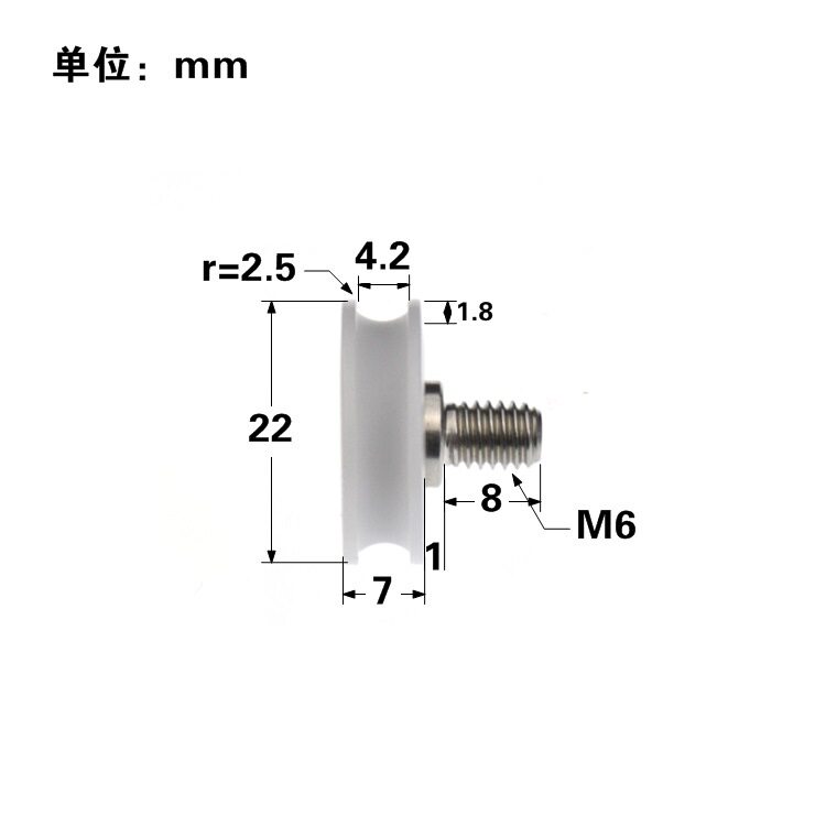 Nylon packaging plastic sliding door and window sliding slide inner diameter 6 outer diameter 22 thick 7 slot width 4 2 U slot pulley bearing