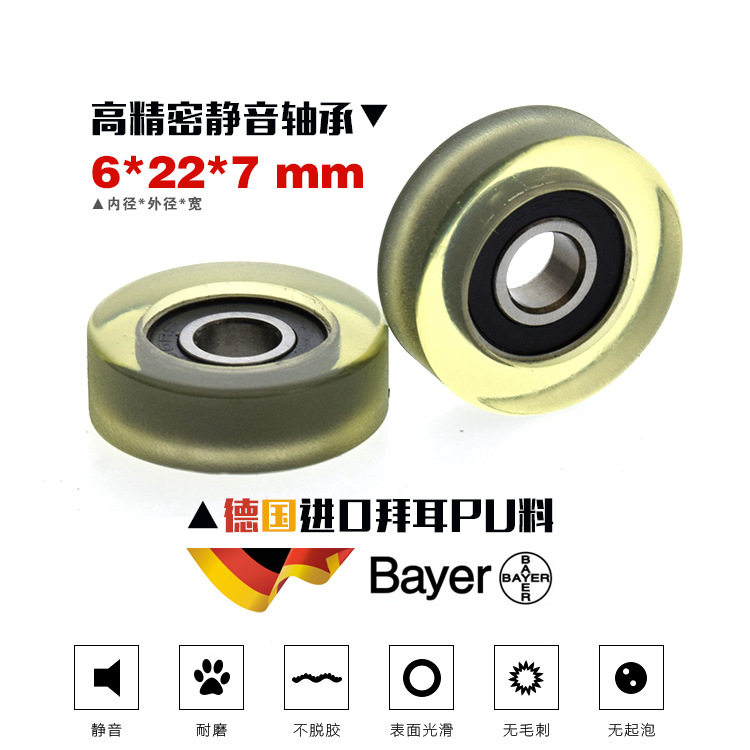 Drawer Cabinet plain roller polyurethane soft rubber wheel 696 bearing rubber wheel miniature wheel 6*22*7mm