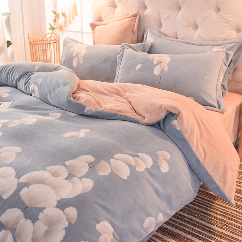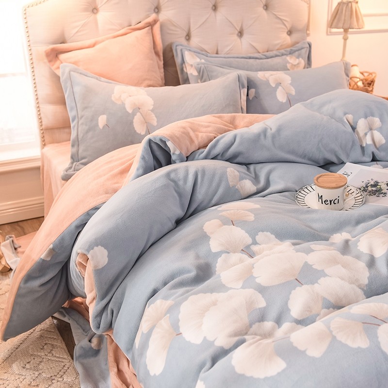 Thickened milk velvet four-piece winter coral velvet double-sided plush flannel plus quilt cover bedding bedding