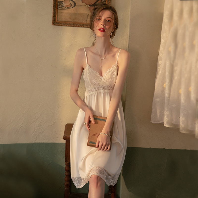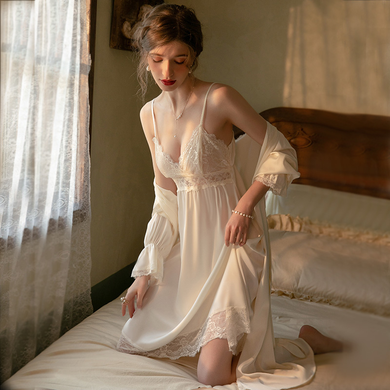 Sleeping dress Girls pure desire to wind up with chest pads Long version Sleeping gowns Two sets of harnesses Sleepwear Women's Summer Style Ice Silk Senior Sensation