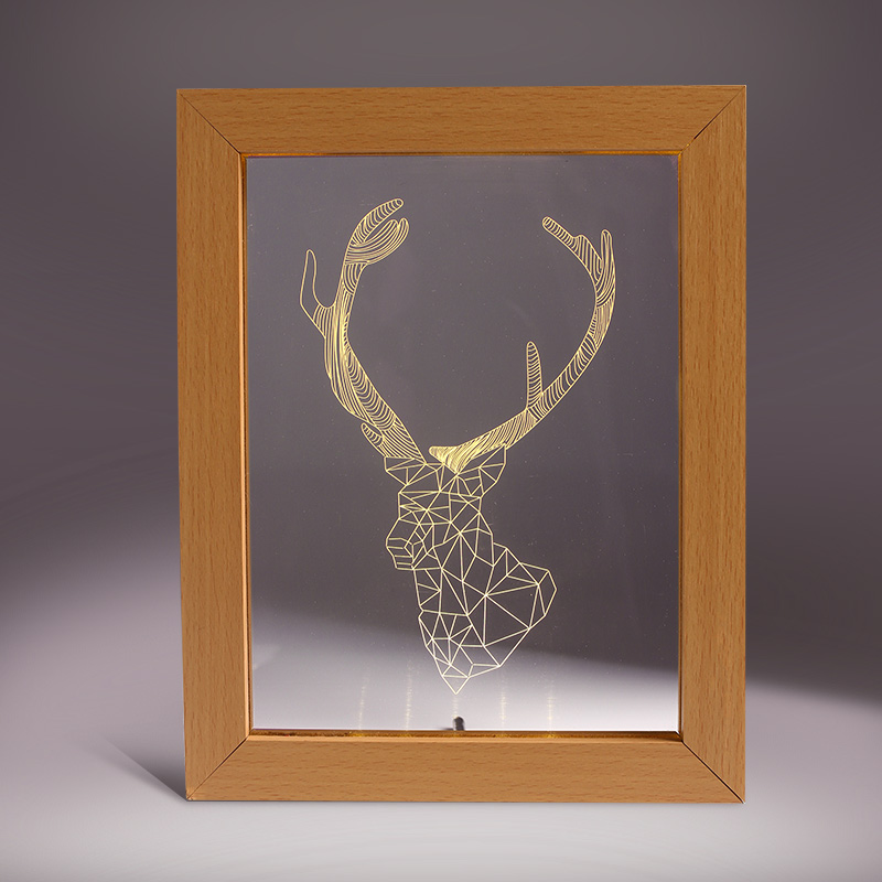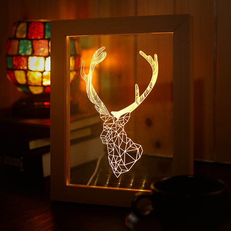 3D small night light plug-in electric bed head lamp creative dream Mini small table lamp bedroom deer head photo frame lamp swing table decorative lamp