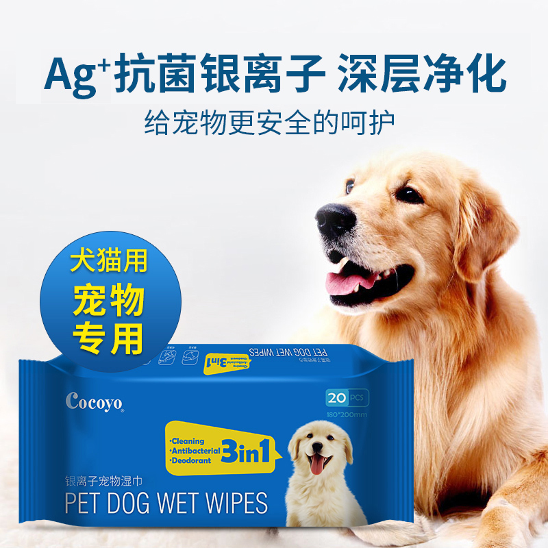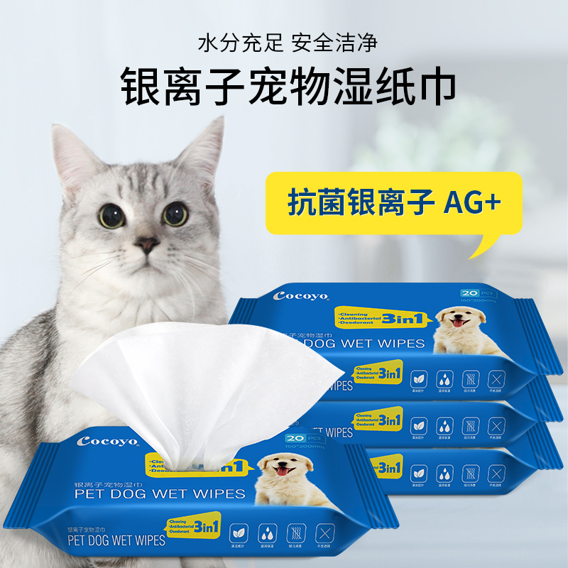 Cocoyo pet wet towel kitty special to tear mark rubbing foot infant cat bacteriostatic cat dog wet paper towels 20 pumping 4 packs