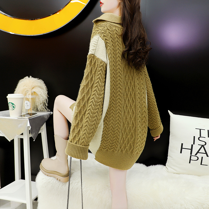 Tide Cards 2022 Spring New Women's Clothing Retro Port Taste Splicing Rammed with Loose Twist and Twist Collar Sweater
