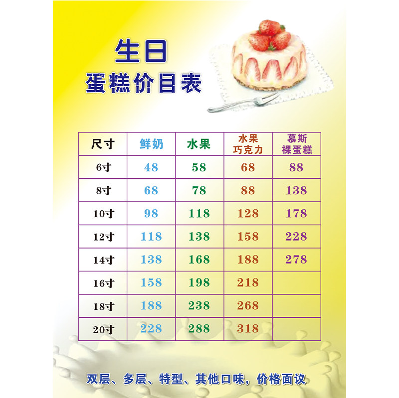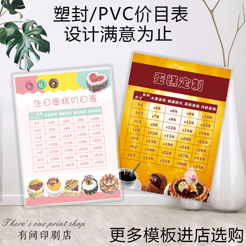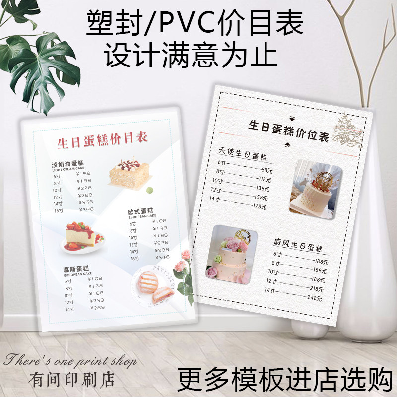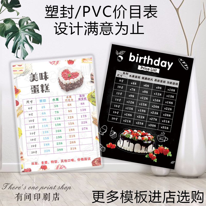 Birthday Cake PVC Menu Customised Design A4 Dessert Baking A5 Care Bay Price List Ordering Meal Display Cards Double Face