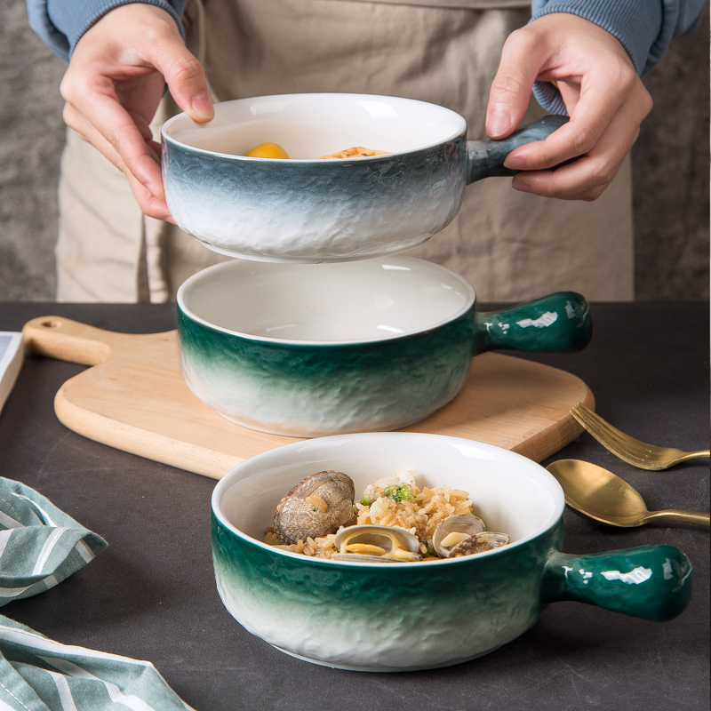 Japanese-style handle bowl ceramic baking household underglaze color oven special baking bowl baked rice bowl fruit breakfast salad bowl