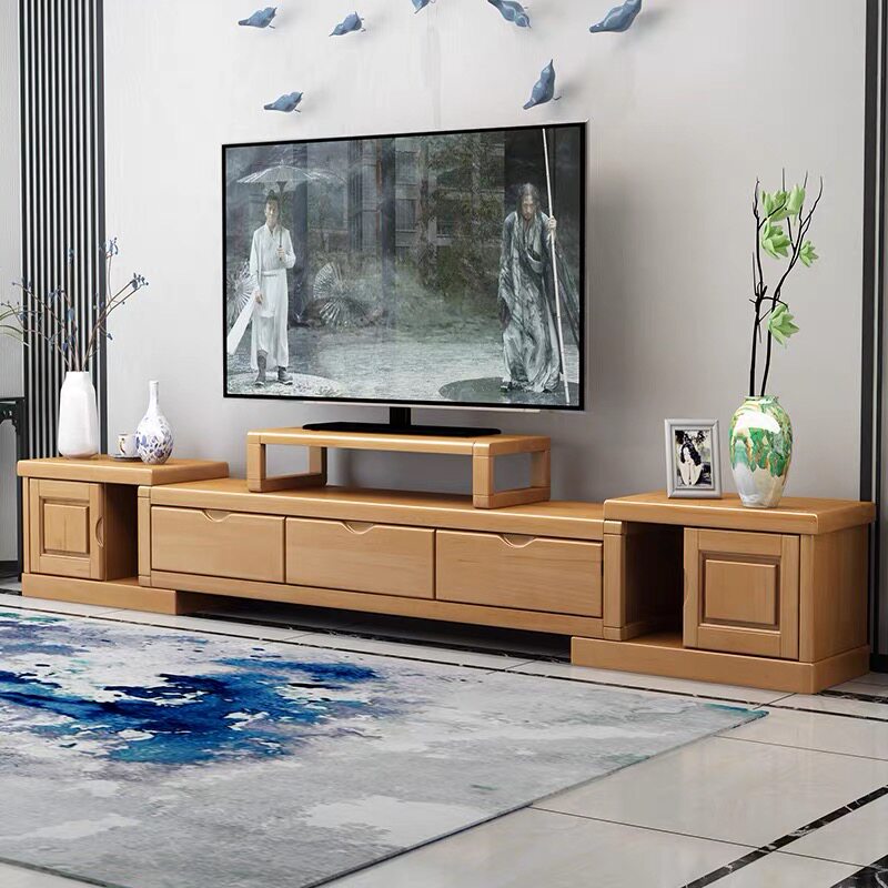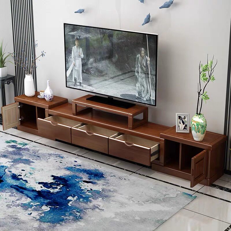 Hua 100 million Wood Song Solid Wood TV Cabinet Tea Table Combination New Chinese Small Family Type Brief Modern Living Room Retractable