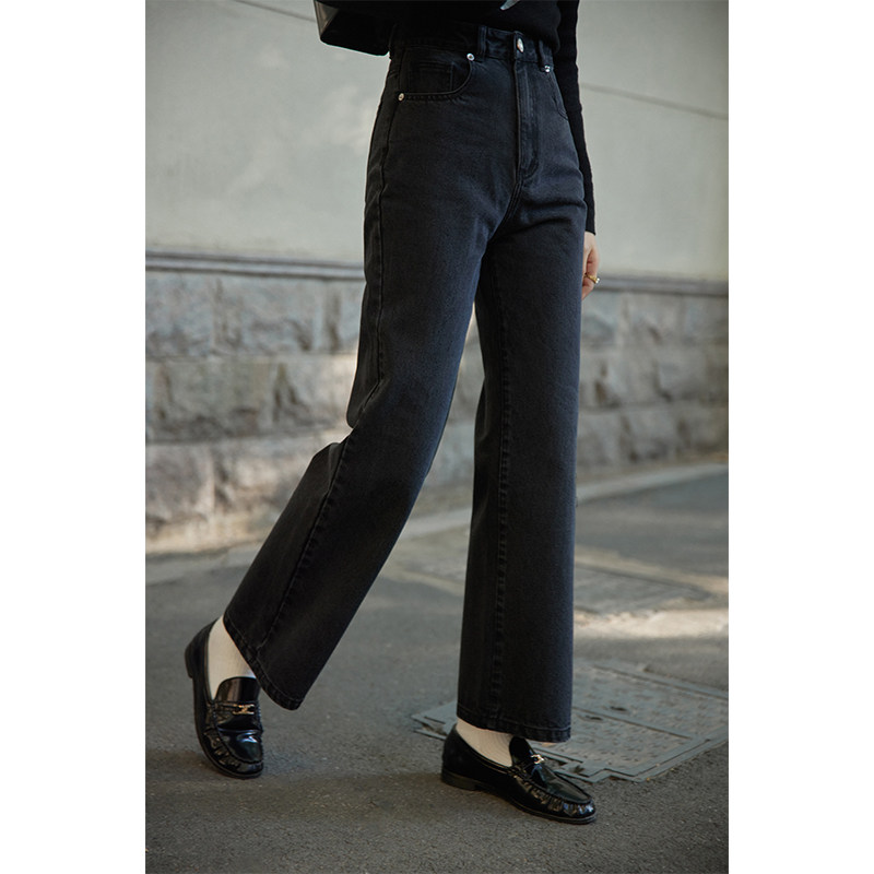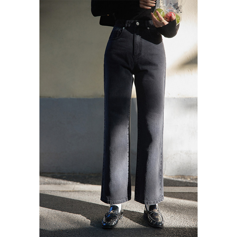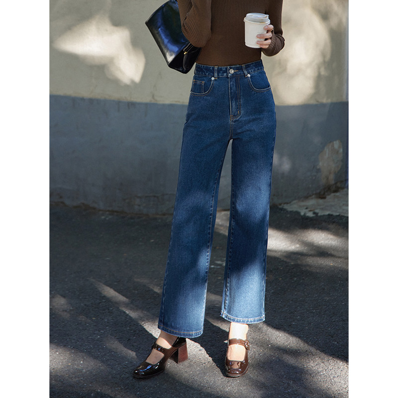 Beautiful emperor washed up with high waist straight barrel jeans women 2022 Spring new shades slim 100 lap pants