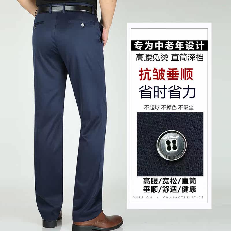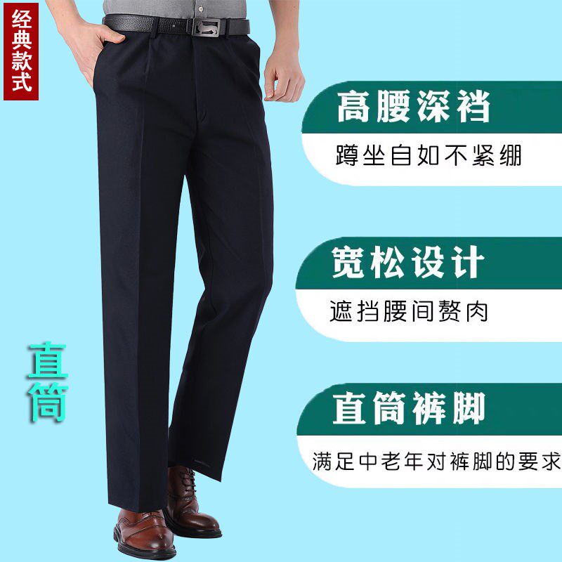 Spring and autumn middle-aged and elderly men's solid-color trousers dad's suit trousers high waist deep crotch casual pants loose straight men's trousers