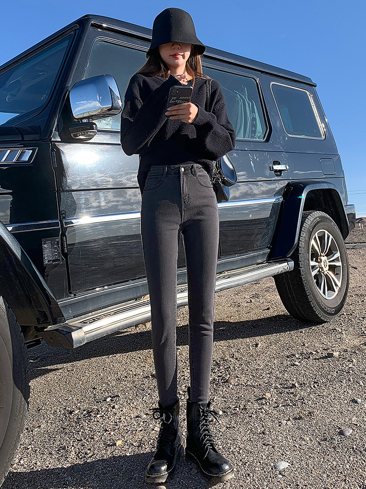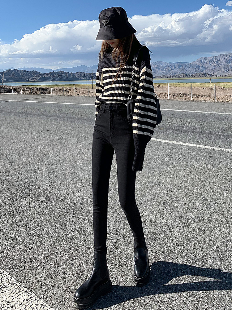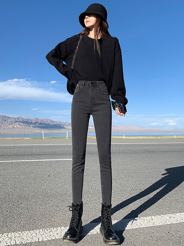 RJVO black jeans women's 2022 autumn and winter new high waist skinny elastic pencil pants trousers
