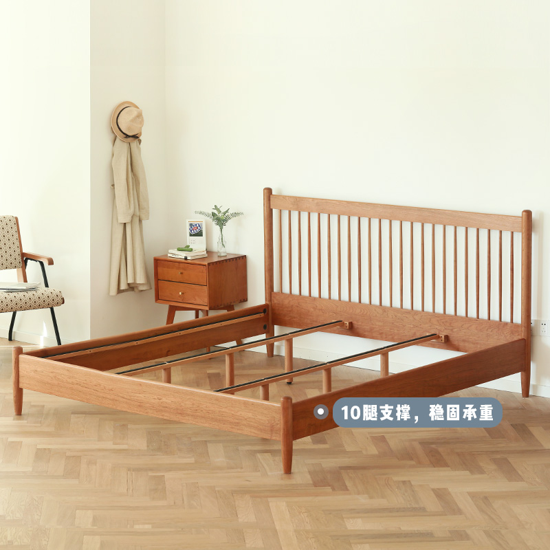 North strangeness furniture full solid wood bed Nordic main sleeper 1 8 cherry wood Double beds Japanese style original wood color 1 5 m Windsor beds