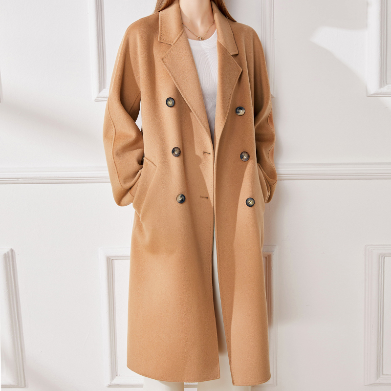 Double-sided cashmere big coat female medium long version 2021 new high end 101801 autumn and winter lacing small sub-weight reduction