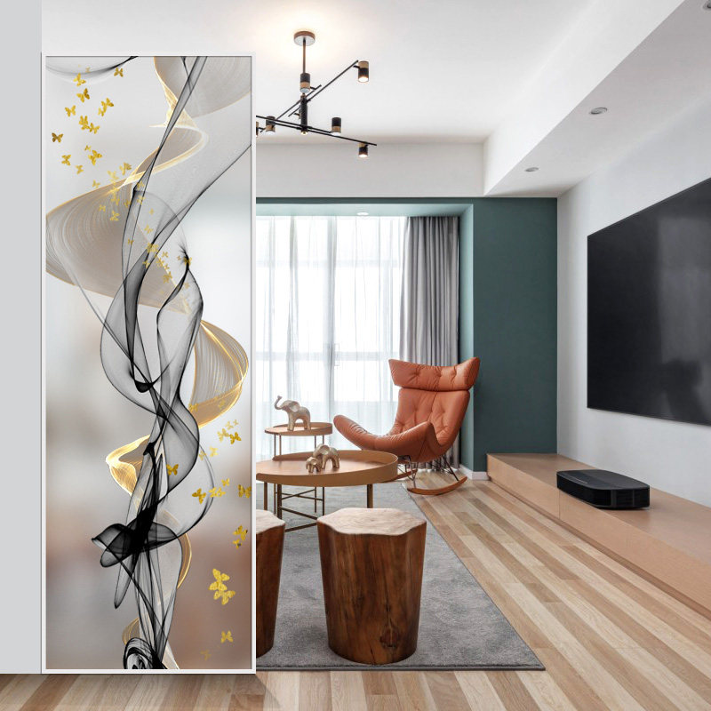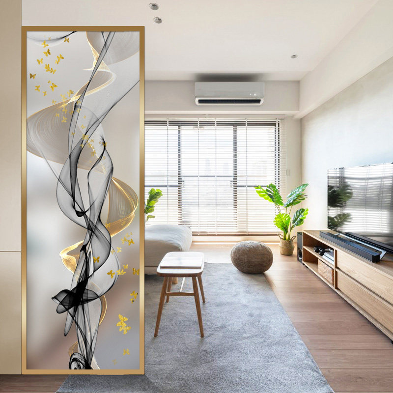 Simple light luxury extremely narrow metal glass screen modern art porch partition Nordic living room bedroom painted abstract