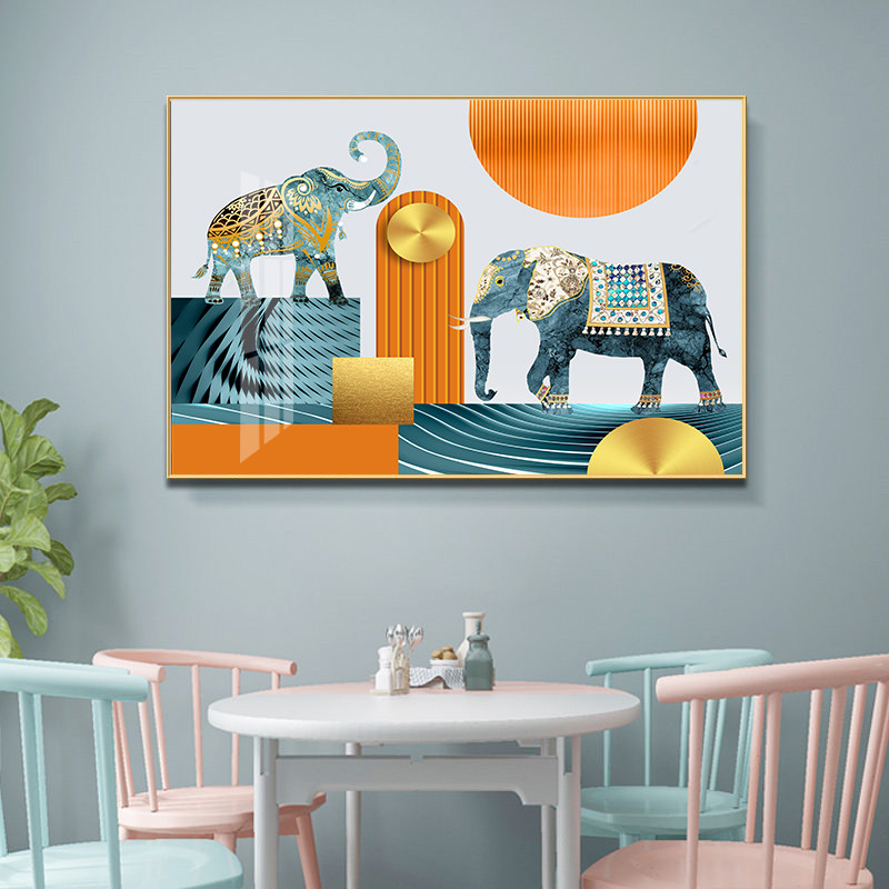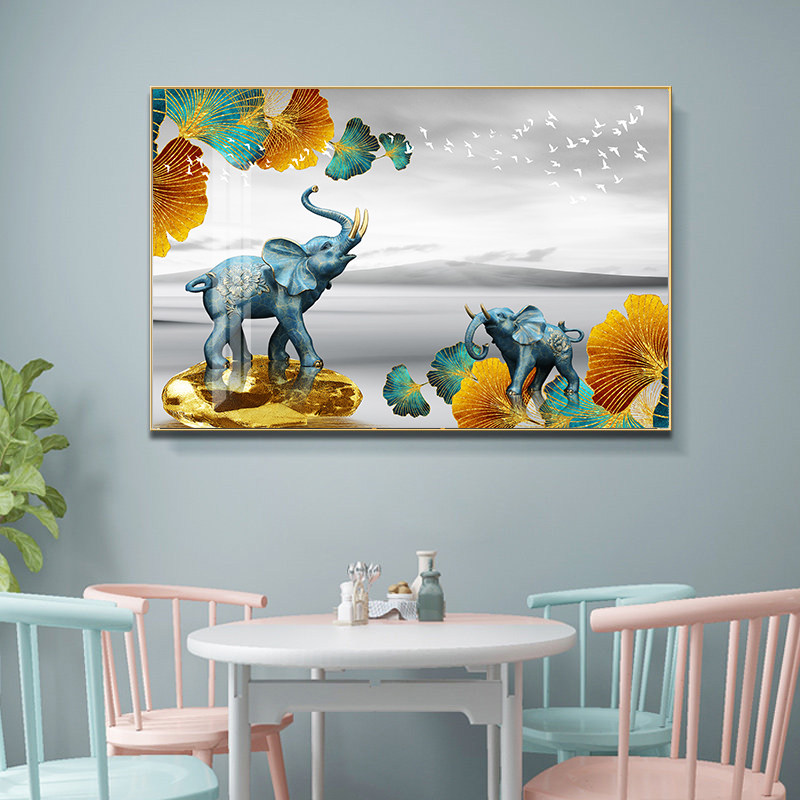 Living Room Decoration Painting Modern Hung Painting Sofa Background Wall Elk Deer Bedroom Nordic Crystal Porcelain Triple Light Extravagant Painting Hanging