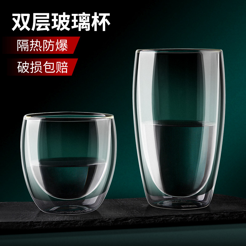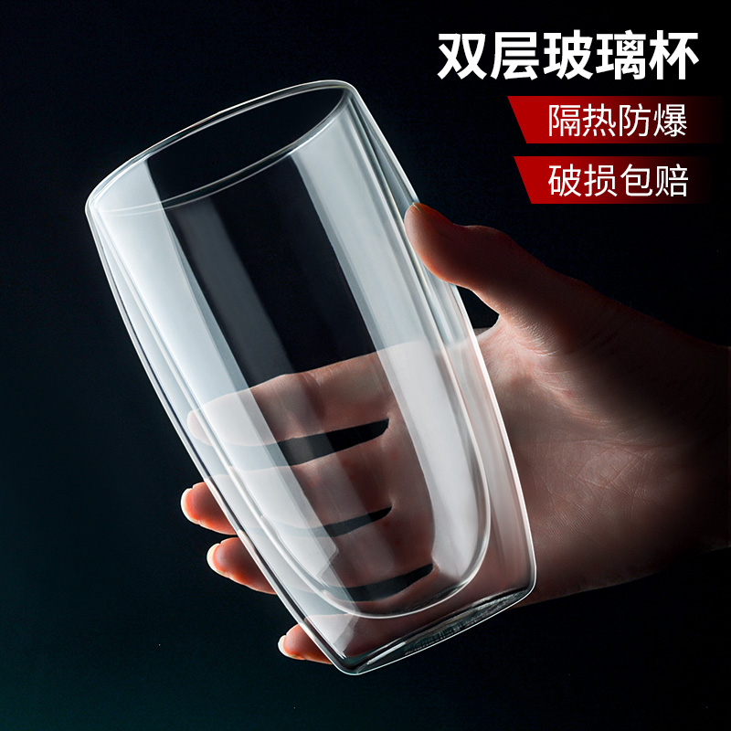 Creative double insulation glass cup household large capacity water cup office Building cup cup male anti-hot