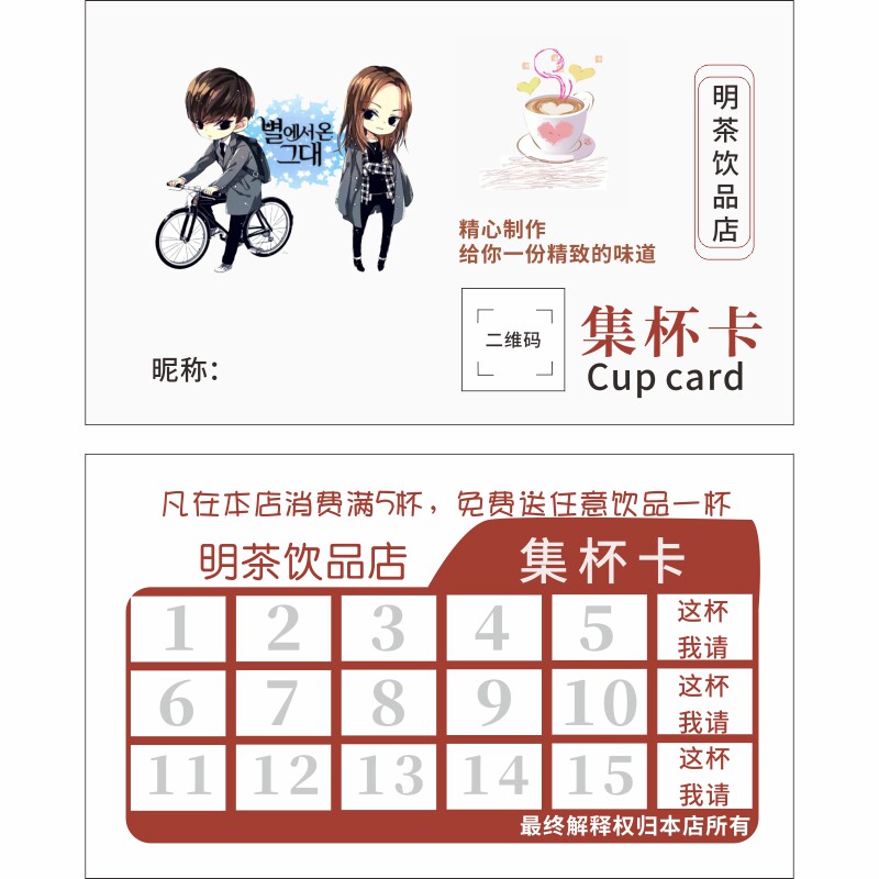 Milk tea points card custom coffee cold drink exchange card full cup cumulative card stamp set point card coated paper printing