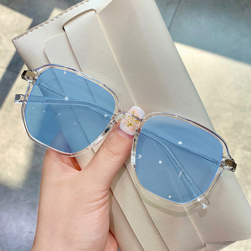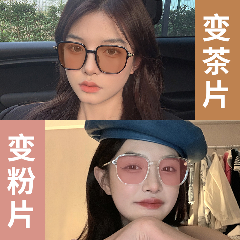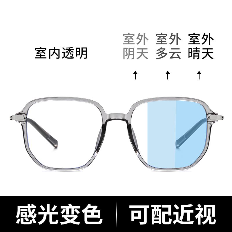 Light sensitive automatic discoloration starred light blue glasses female tennis red anti-blue light anti-radiative care eye male tide face small