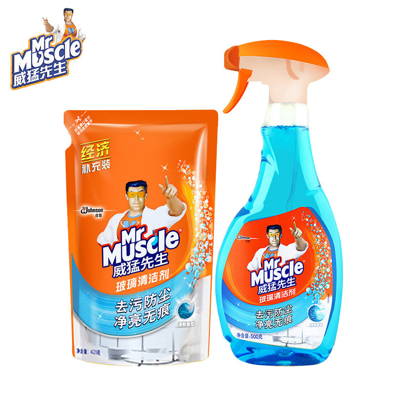 Mr. Wei Meng wipes the glass and washes the bathroom glass cleaner for household shower room window cleaning spray to remove dirt