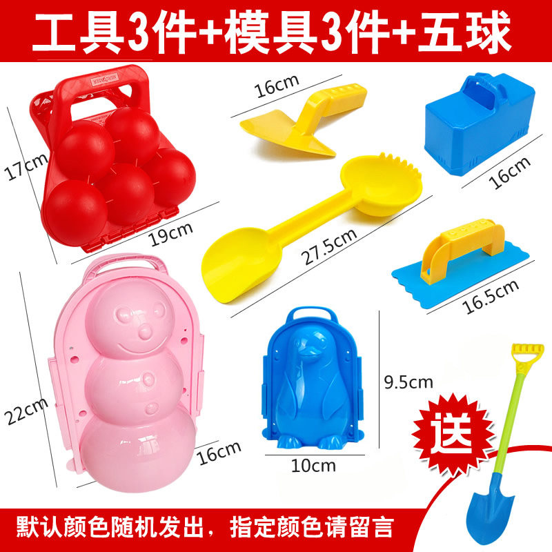 Large penguin mold -- color random large snowman mold -- color random small penguin mold -- color random snow play tool 3-piece set -- color random snow brick -- color random