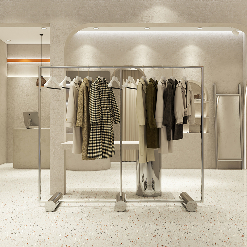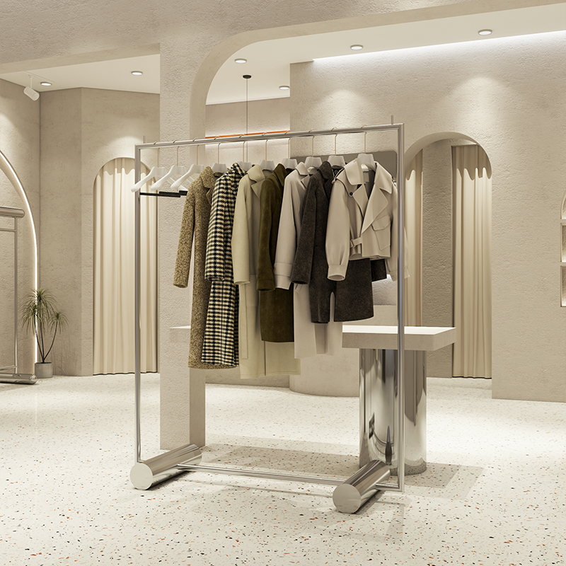 Clothing Store Show Shelf Stainless Steel Floor Type Middle Island Shelf Men And Women's Clothing Store Shelves Hanging Clothes Hanger Display Props