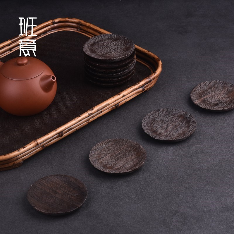 Bamboo Officer Ebony Wood Tea Mat Insulated Tea Tray Small Coaster Creative Retro Tea Cup Holder Kung Fu Tea Set Tea Ceremony Accessories