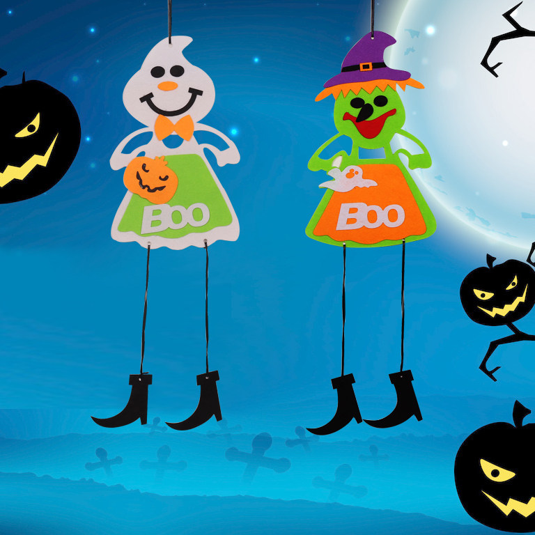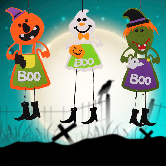 Pumpkin man non-woven pendant witch man non-woven pendant holding card pumpkin hanging holding card green ghost hanging