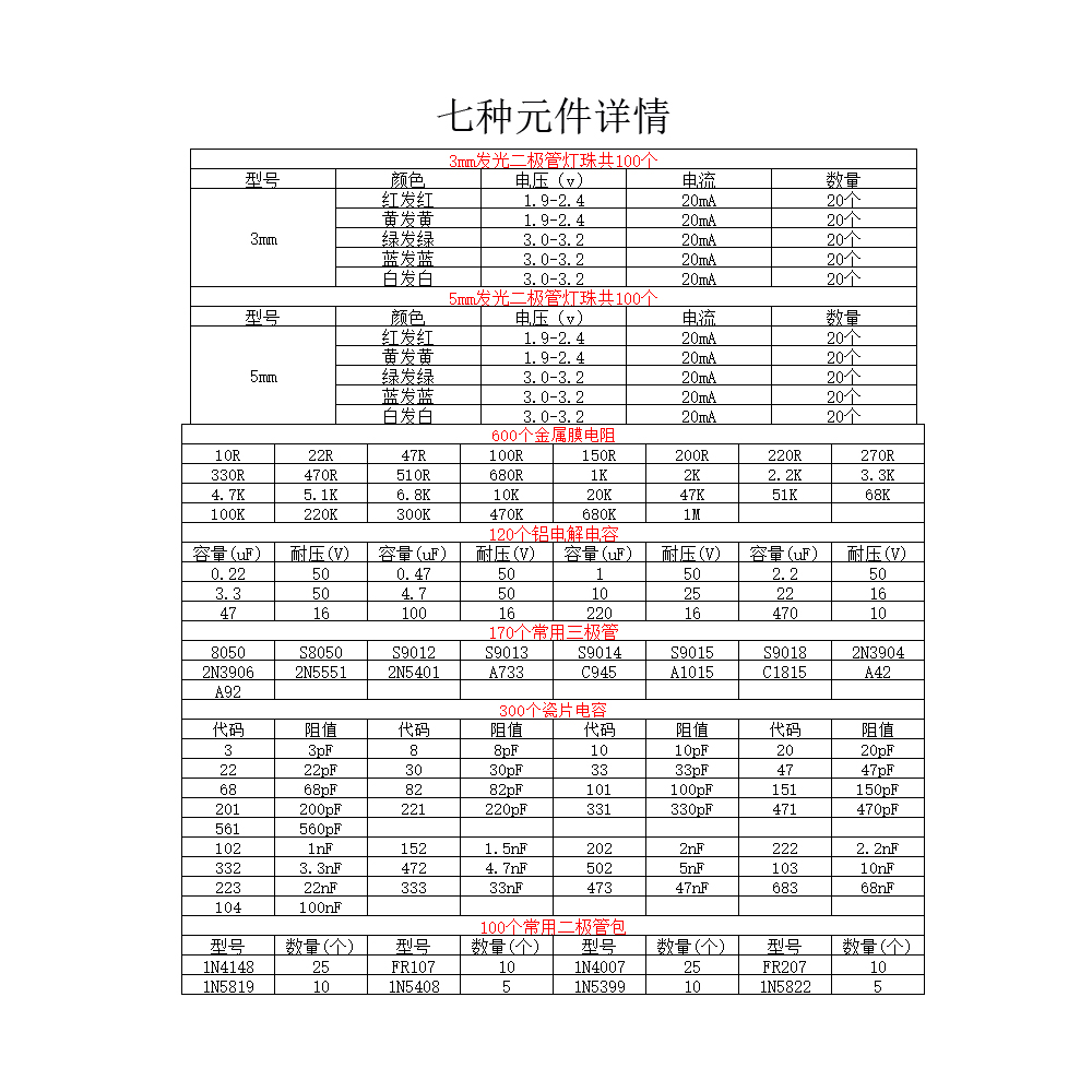 Seven common elements packs resistive capacitive triodes diode mixed DIY maintenance experimental electronic components-Taobao
