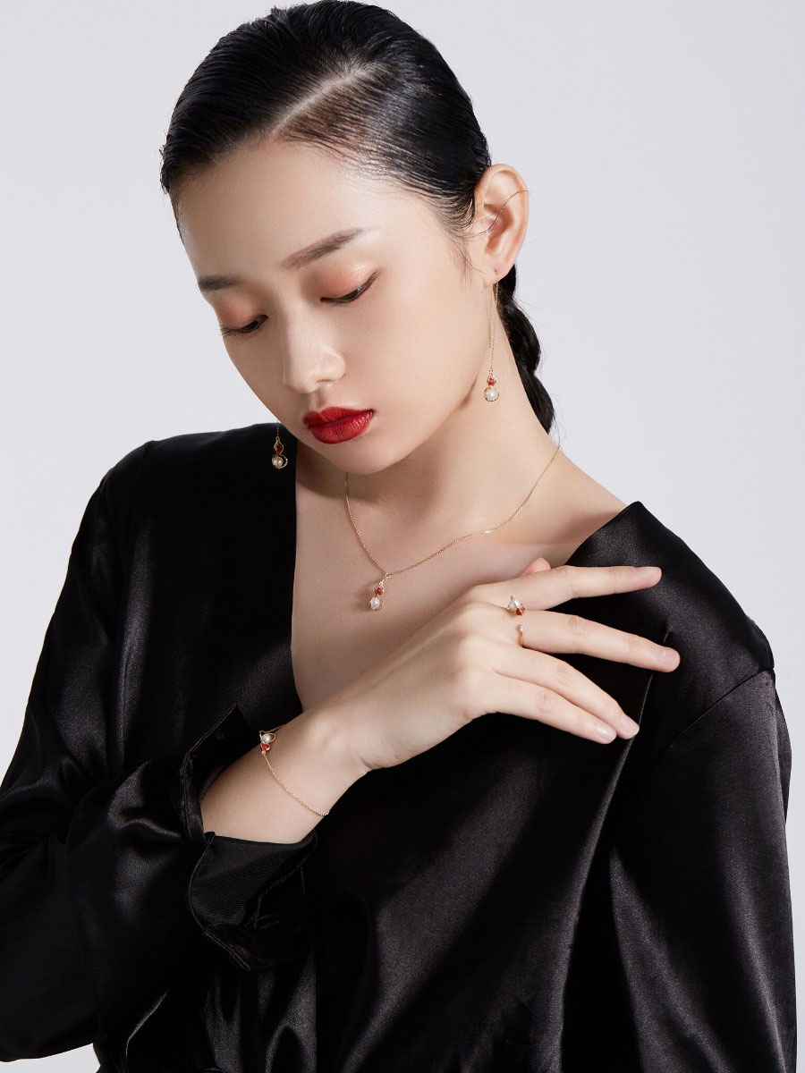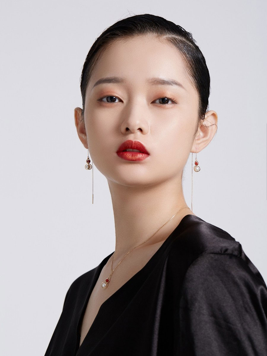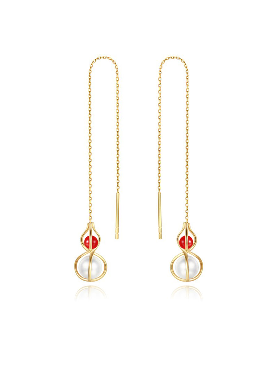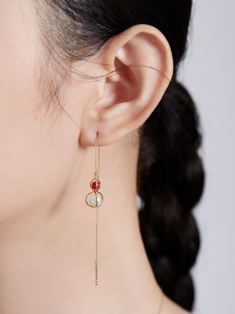 HeyJewel Original Design Beauty Laude Light 18K Gold South Red Gourd Ear Necklace Unique small crowdsourced Temperament Ear Accessories