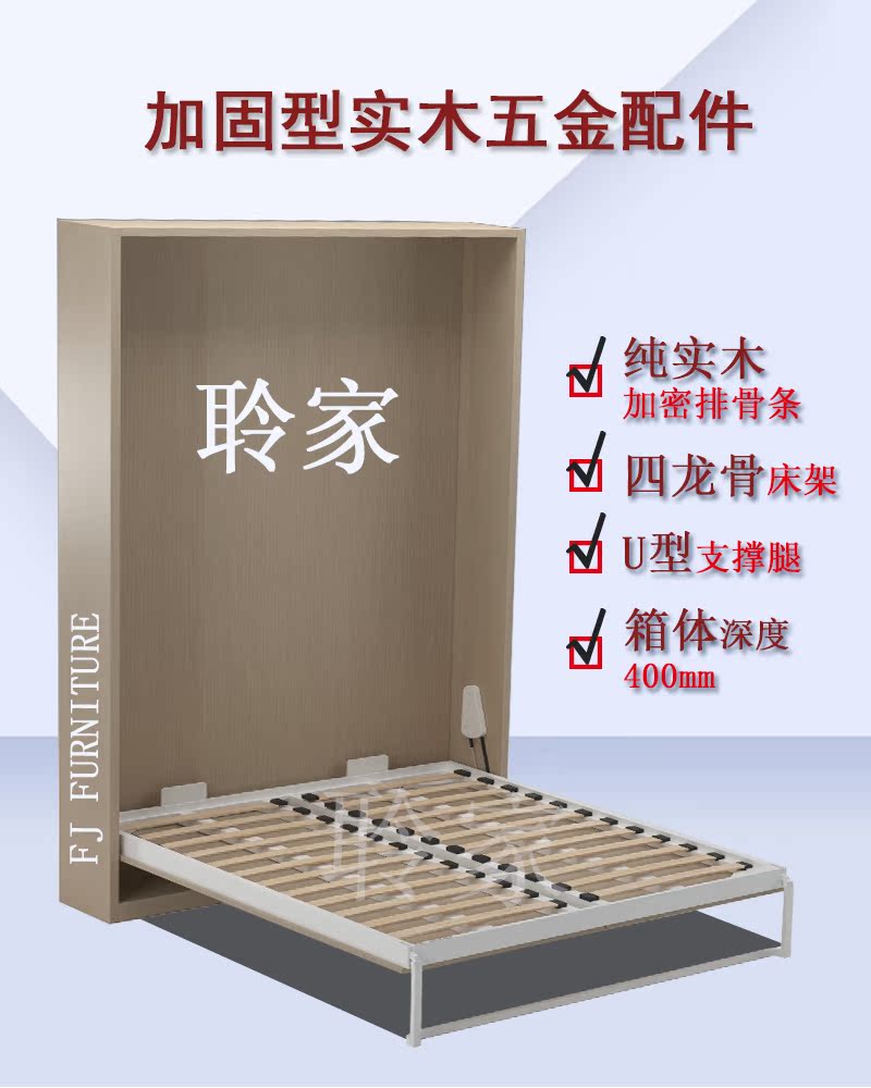 Laijia Invisible Bed Murphy Hardware Accessories Bed Wall Bed Rollover Reinforced Solid Wood Multifunctional Small House Flip Bed