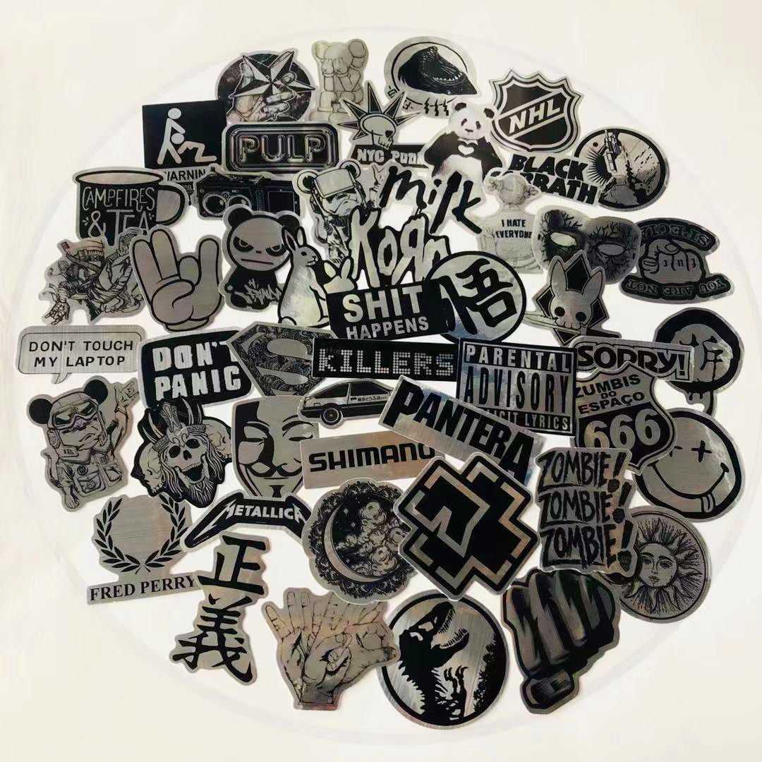 50 tensioning wire imitation metal cartoon mobile phone shell electric car electric car insulation cup mobile charging cup fishing case stickers Skateboard Stationery Decoration Individuality Black & White Waterproof Tide Card Fun Material Little Stickers