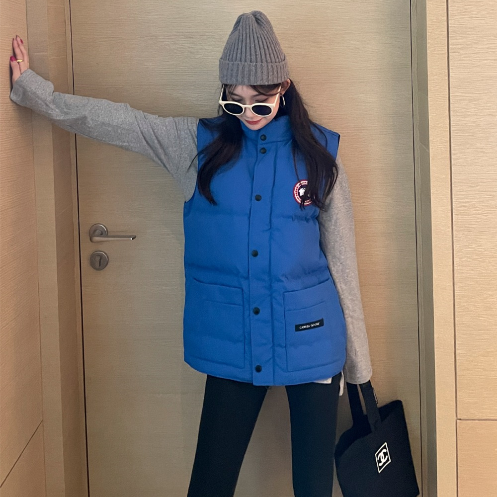 Big goose down vest solid color basic couple sleeveless vest with wear-resistant waterproof windproof warm jacket