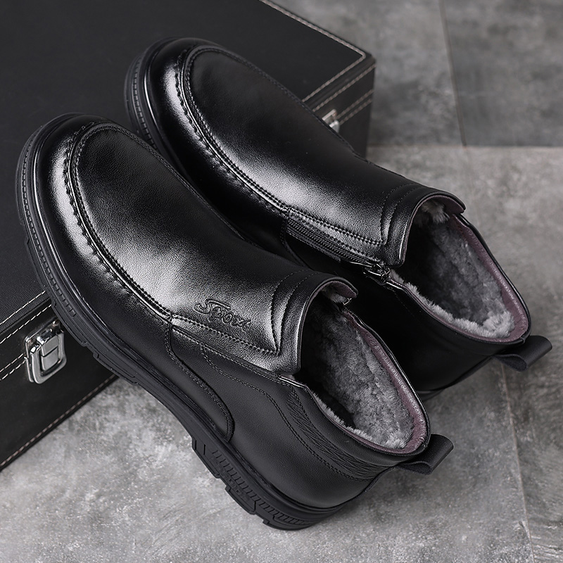 Winter Men Cotton Shoes Genuine Leather Wool Plus Suede Thick Bottom Middle Aged Casual High Help Warm Seniors Dad Cotton Leather Shoes-Taobao