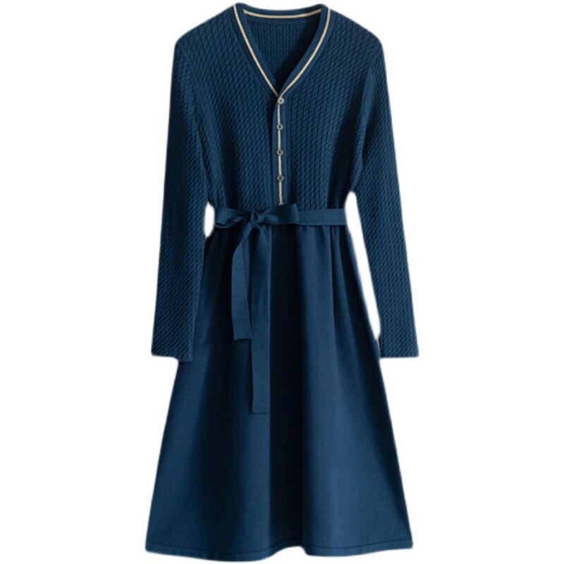 Mularsa Elegant High Waist Lacing Knit Foreign Dress Woman 2021 Autumn Winter New Temperament Long Version Big Swing Dress