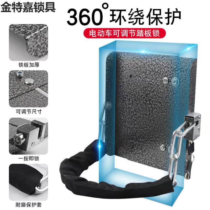 Electric car battery lock pedal lock battery lock anti-theft lock plus coarse thickened iron plate pure copper lock core chain adjustable