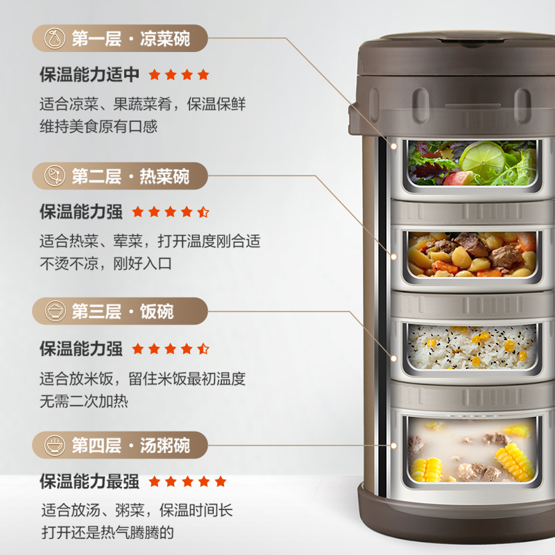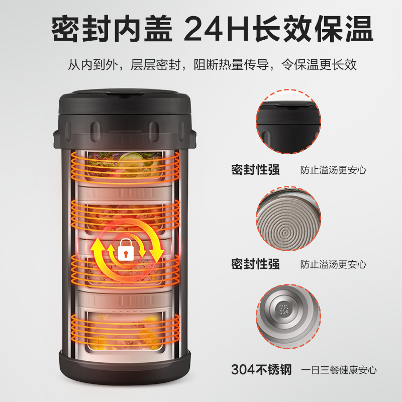 Supoir Insulated Lunch Box Meal Barrel Overlong Insulated Home Office Worker Large Capacity Student Portable Multilayer Lunch Box