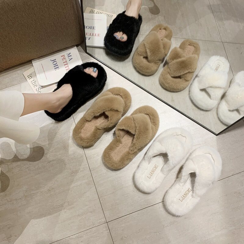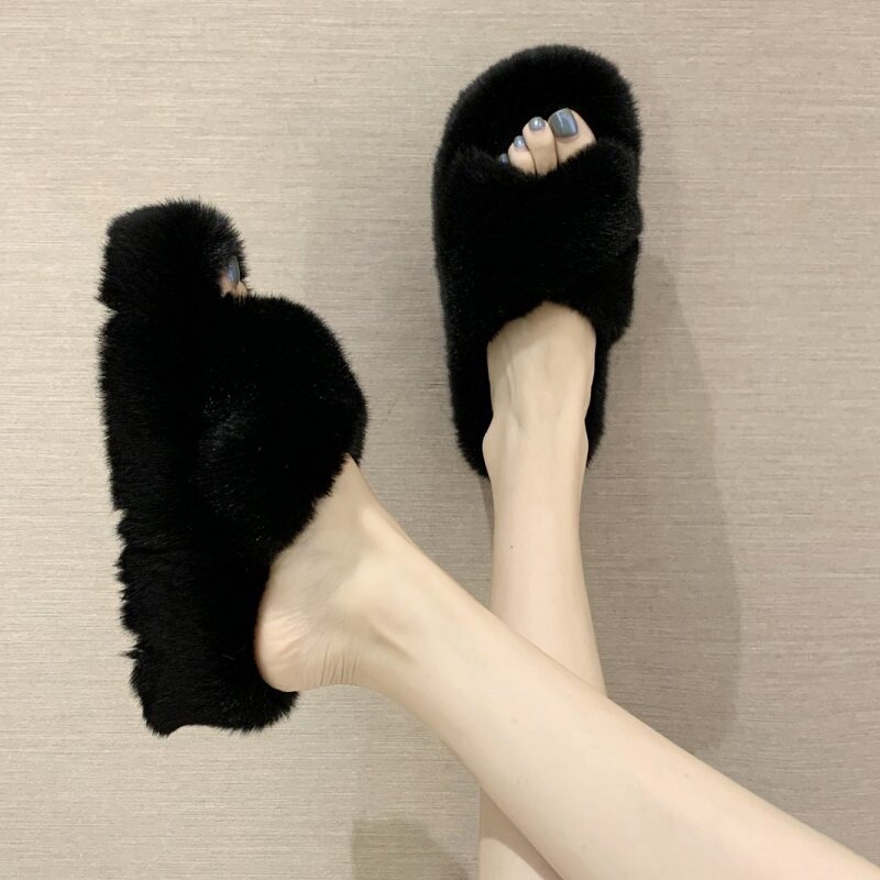 Cross heel hair slippers white cross heel slippers card with color cross high heel hair slippers black