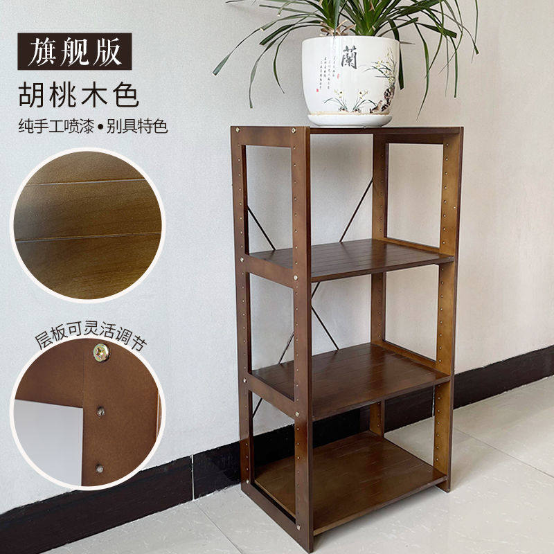 Solid wood kitchen shelf shelf floor-to-ceiling multi-layer living room storage shelf multi-functional small shelf adjustable flower stand