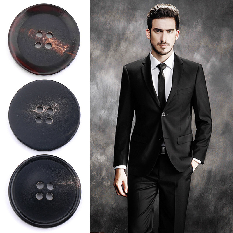 Real Horn Button Upscale Suit Buttoned Black Round Texture Four Eyes Men And Women West Suit Coat Sweater Jacket Cuff