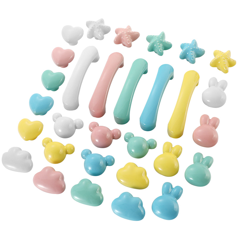 Brass base cloud handle White cloud handle Pink cloud handle Yellow cloud handle Blue cloud handle Green love handle White love handle Pink love handle Yellow