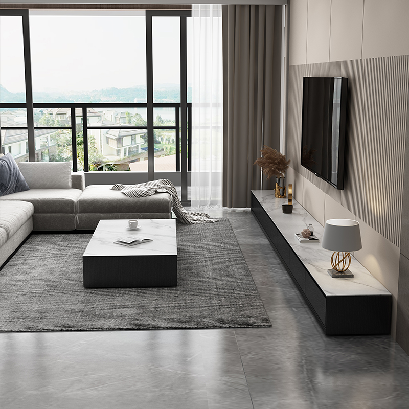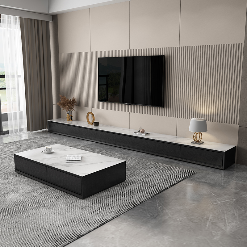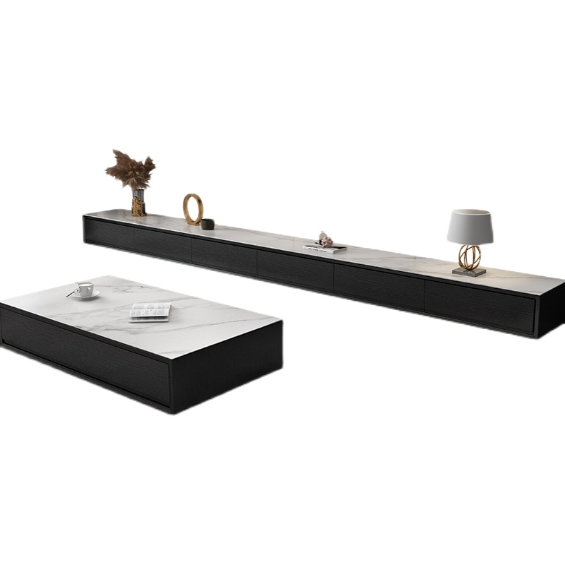 Modern minimalist slate coffee table TV cabinet combination light luxury living room Daping number floor-to-ceiling TV cabinet custom 3 meters