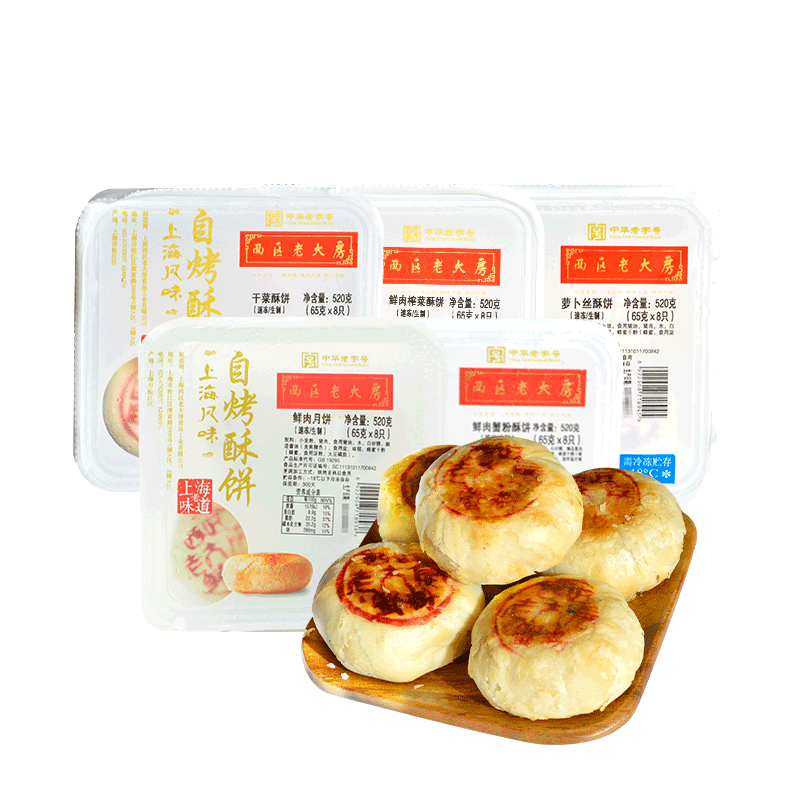 Shanghai West District boss room fresh meat moon cake 520g crisp cake raw embryo combination 8 packs 2 boxes of specialty time-honored SF Express