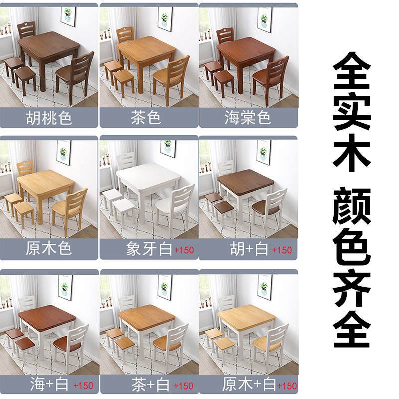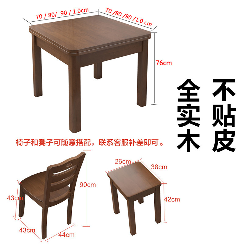 All solid wood dining table household small apartment 0 8 meters wide modern simple small square table and chair combination 4 people dining table