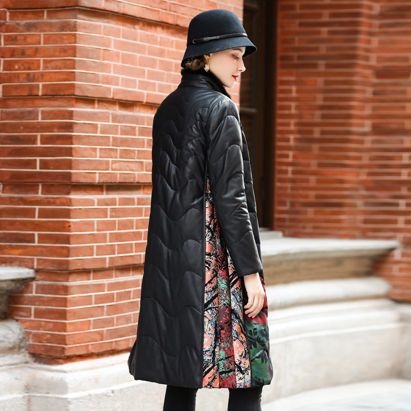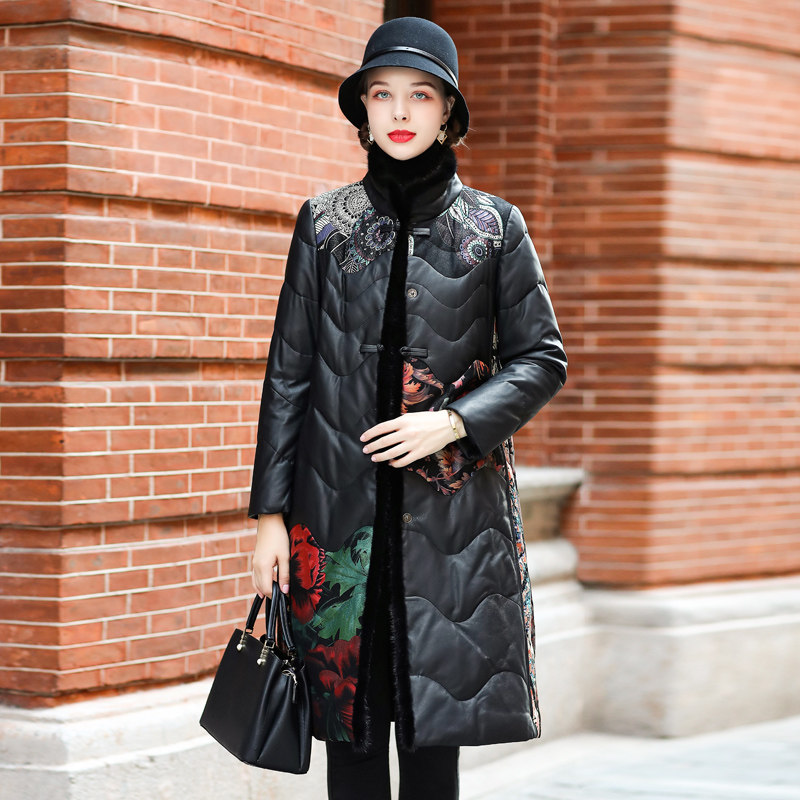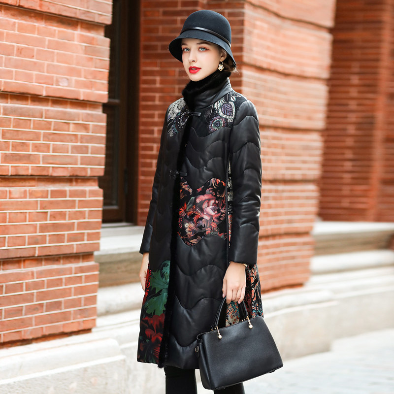 Henning genuine leather duvet women's medium long version 2021 New moms dress Sheep leather printed leather fur coat fur coats