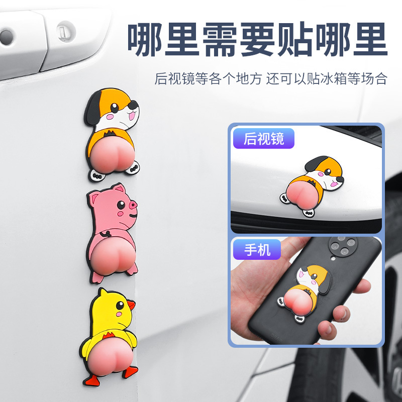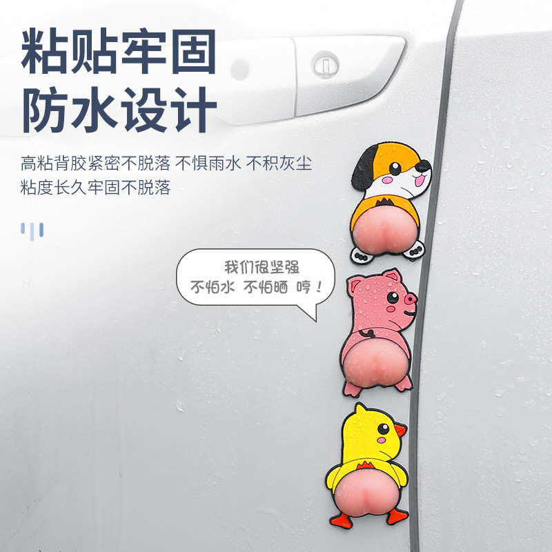 Cartoon cartoon anti - collision rubbing cute butt car anti - collision rubbing 3D label silicone rearview mirror car patch