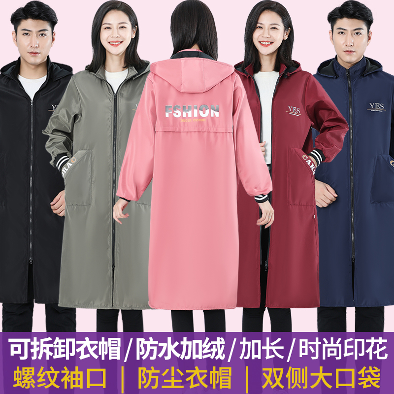 Lengthened overcoat female adults plus velvet padded long sleeve men's overalls waterproof and oil-proof apron autumn and winter coat coat coat