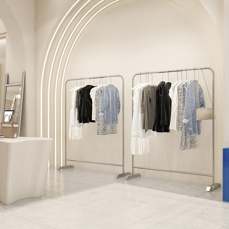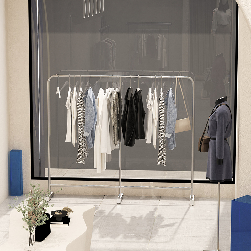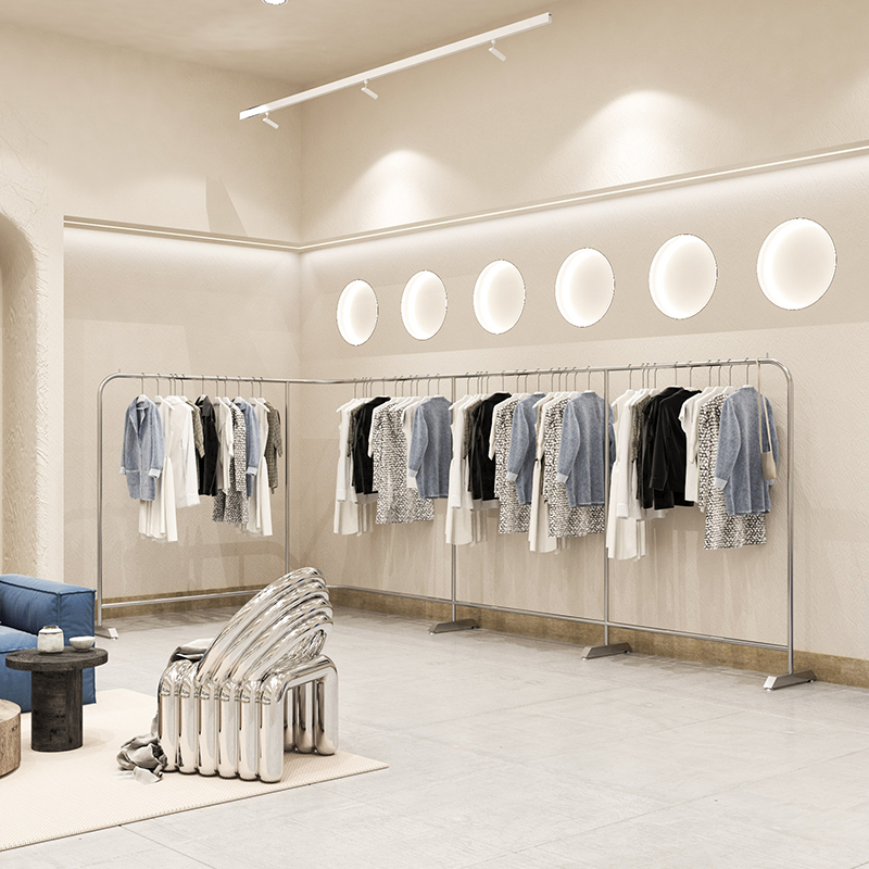 Clothing Shop Show Shelf Stainless Steel Hanging Hanger Men And Women Fashion Shop Floor Shelves Mobile Middle Island Display Props