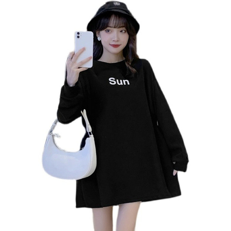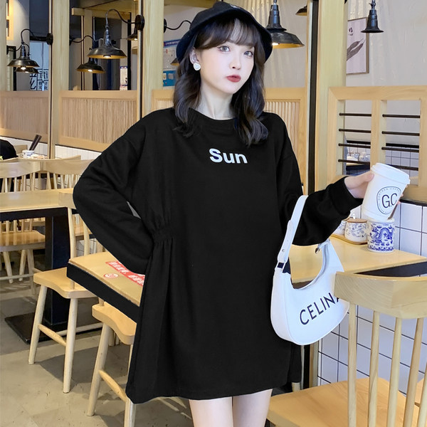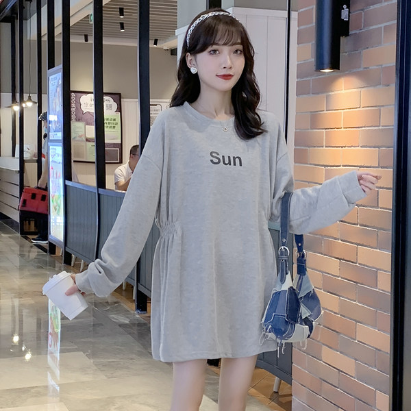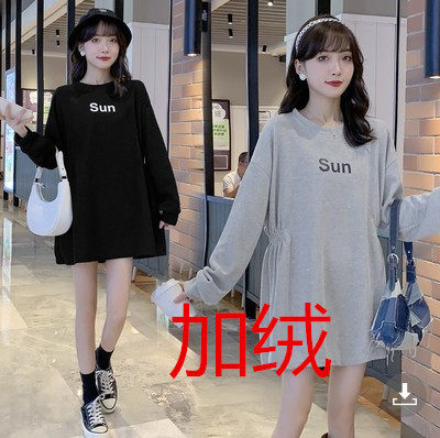 Large size dress for pregnant women's clothing and autumn winter clothing for a long version of the damp mother with long sleeves covered with loose a-word blouse 200 catty