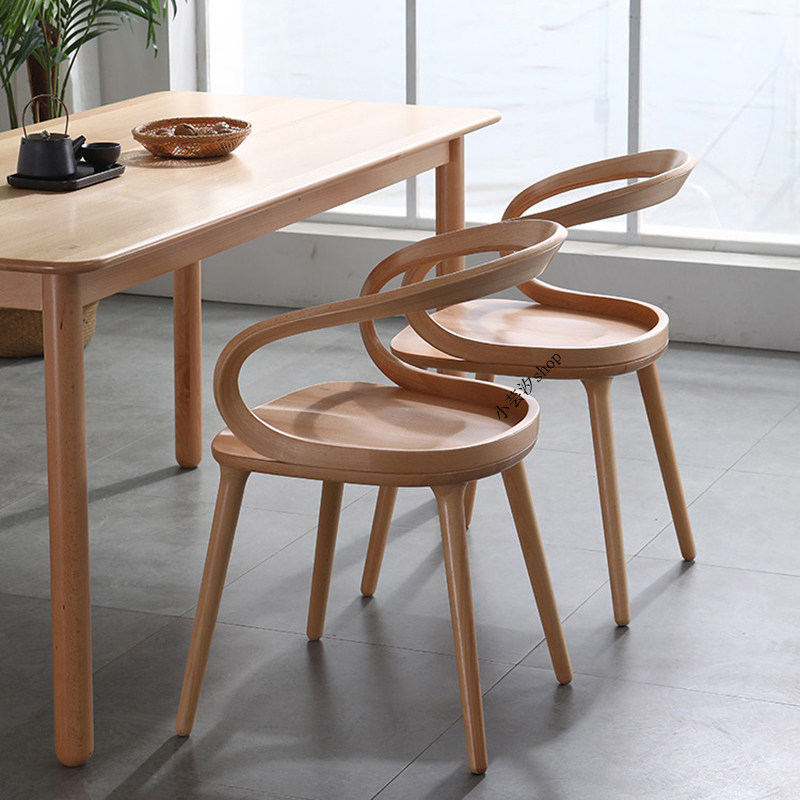 Nordic solid wood dining chair simple home desk chair cafe light luxury adult backrest creative ash streamer chair