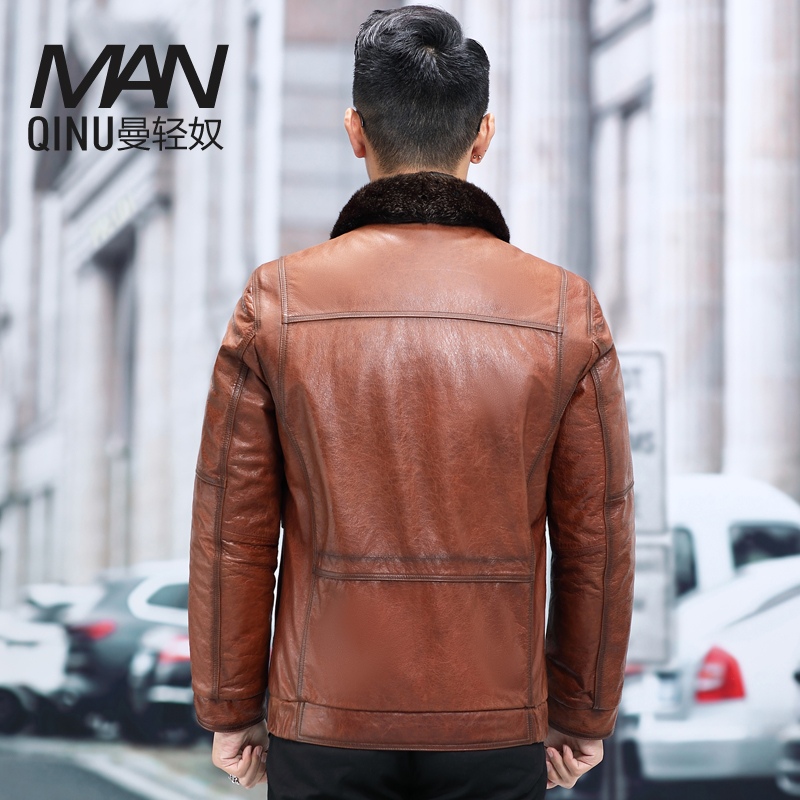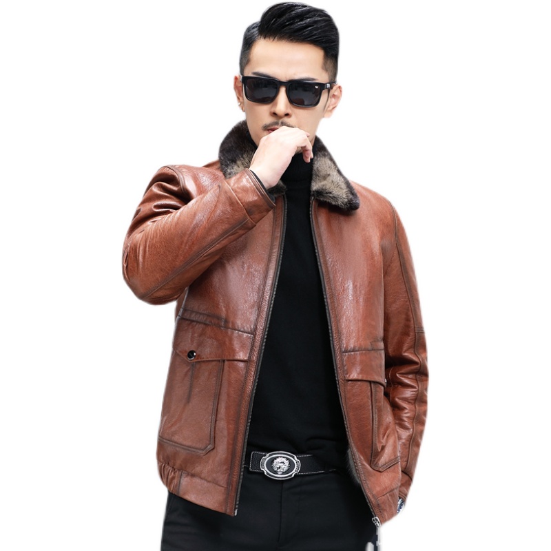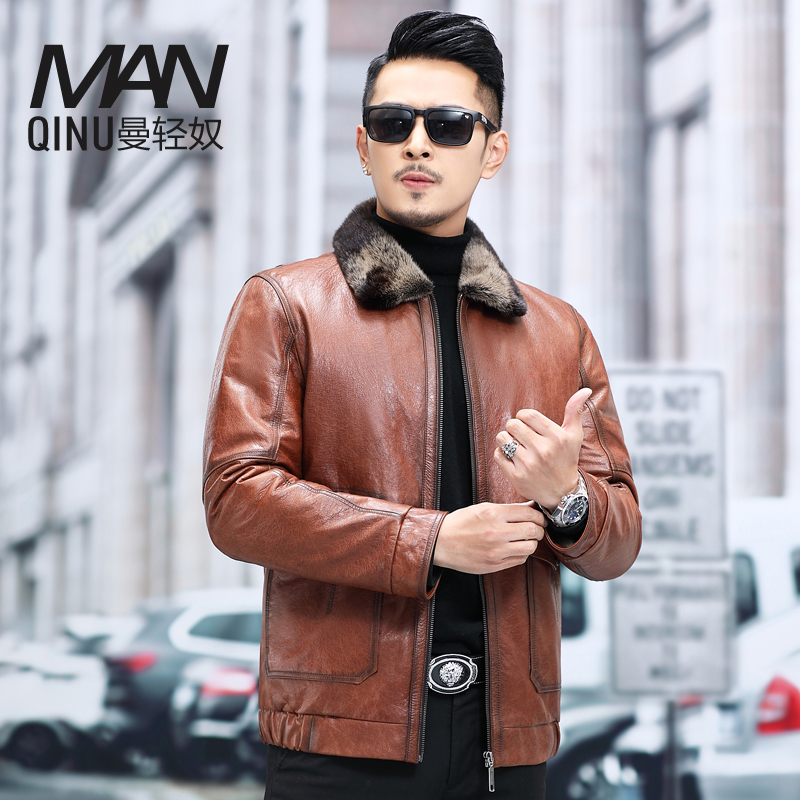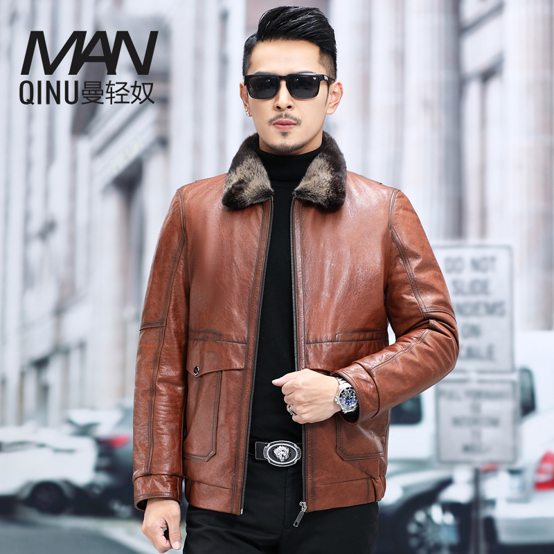 Genuine leather jacket men's whole mink mink liner head layer cowhide short fur one lapel fur mink fur coat winter