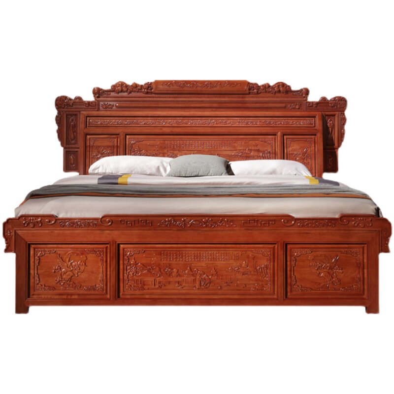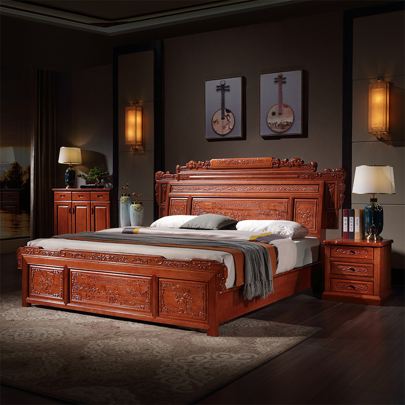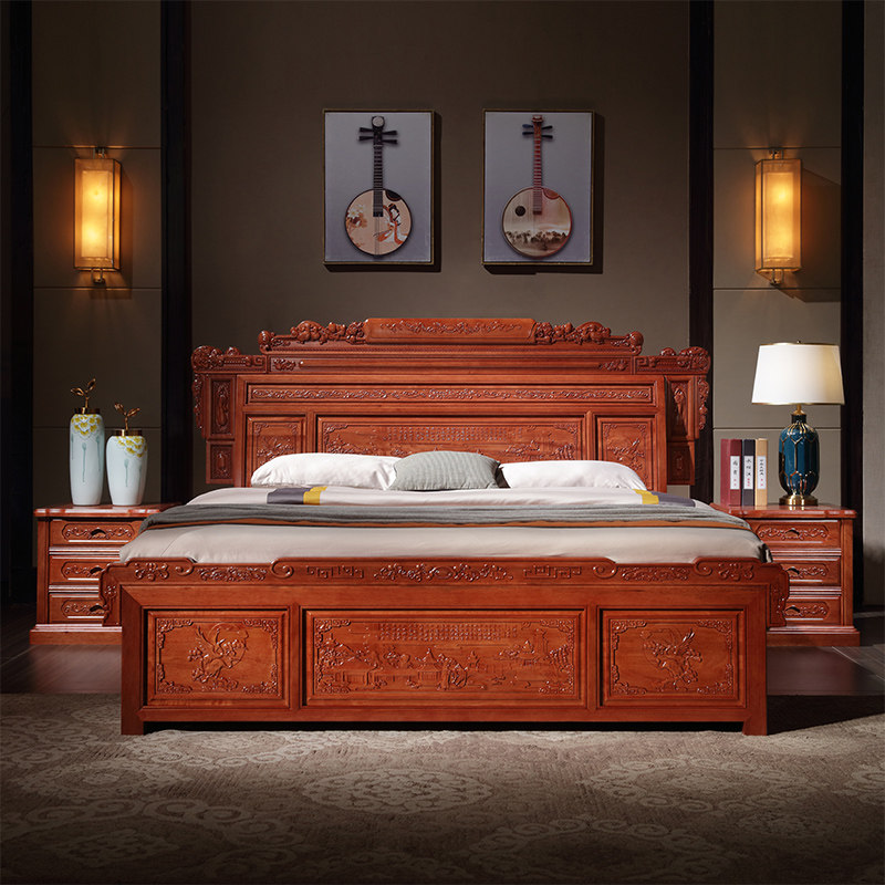 Jinhua pear wood bed Ming and Qing classical home master bedroom mahogany double bed double bed orchid pavilion sequence carved solid wood furniture