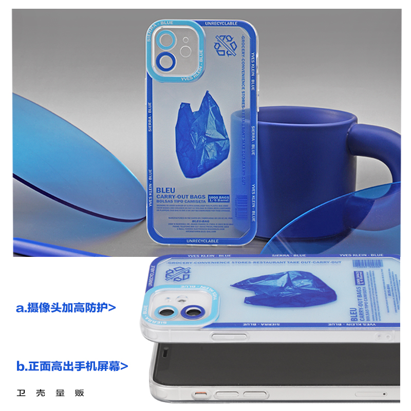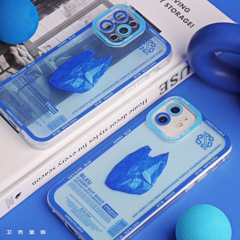 New iphone13promax phone protection shell transparent brief to apply Apple 13Pro Klein blue personality 12
